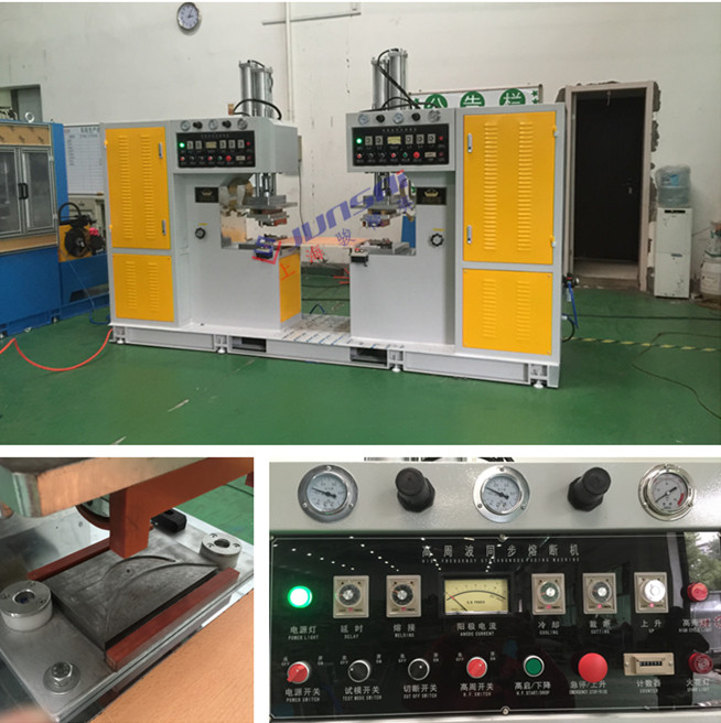 高周波熔断机广泛用于吸塑卡纸包装、PVCPETGGAG、EVA、PEVA、TPU、PU合成革材料等均可同时完成熔接及切断之作业!既在同一次加工中,一次完成熔接及切断作业。