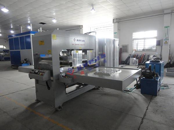 2. 四导柱定位精度高,使用范围广,地垫压花机出力大稳定性好,设有过压、过流保护装置,在工作异常时可自动切断高压以保护震荡管以及整流器,同时可避免不当操作引起的频率漂移。