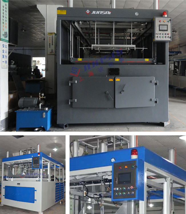 特性:1. 皮卡箱宝厚片吸塑设备配置高。加热炉采用红外线陶瓷发热砖上下加热,。采用温控仪一对一控制发热砖,使炉区内温度到时候加均匀。成型部分由密封气箱,压片框,上模组件下模组件组成,成型中下模采用真空成型,同时下模配有平衡同步器,确保模架运行平稳。配有完整真空系统,包括真空箱,真空泵,真空储存罐,真空阀,反吹脱模装置,二次真空和延迟真空。